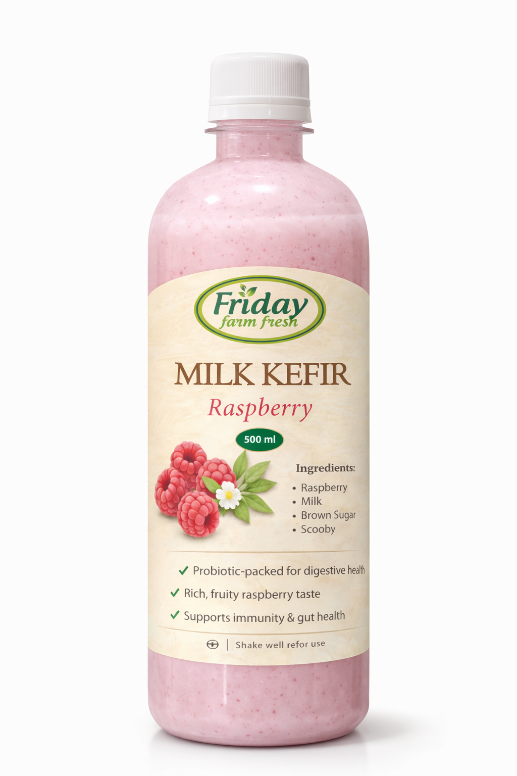 Our Raspberry Milk Kefir is crafted using traditional fermentation methods and blended with natural raspberry flavour. Smooth, lightly tangy, and refreshing.
